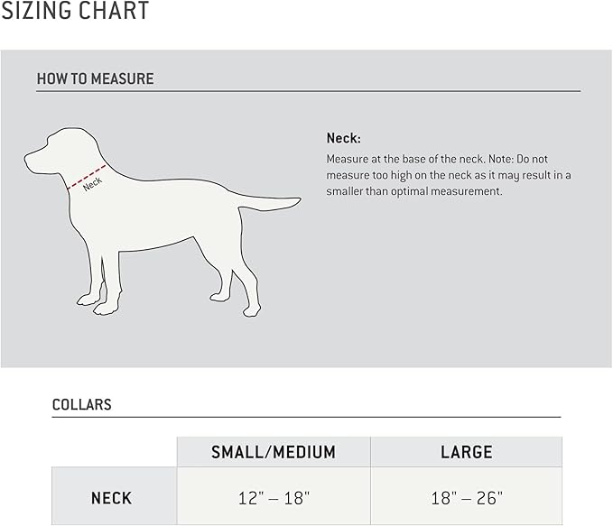 • Sizing: Medium (Neck: 12"- 18") Large (Neck: 18"- 26") Measure at the base of the neck. Note: Do not measure too high on the neck as it may result in a smaller than optimal measurement