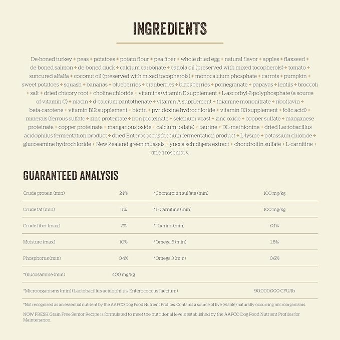 Now Fresh Grain Free Dog Food, 3.5 lb - Dry Dog Food Senior Recipe for Dogs - Real Meat and Fish for Protein - Healthy Diet for Small, Medium and Large Breed
