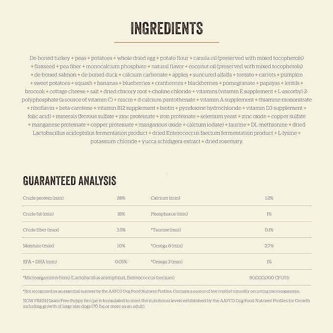 Now Fresh Grain Free Puppy Food, 3.5 lb - Dry Dog Food Recipe for Puppies - Real Meat and Fish for Protein - Healthy Diet for Small, Medium and Large Breed Dogs