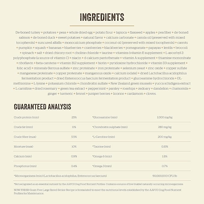Now Fresh Grain Free Dog Food, 25 lb - Large Breed Senior Dog Food Recipe - Healthy Diet with Probiotics & Real Meat and Fish for Protein