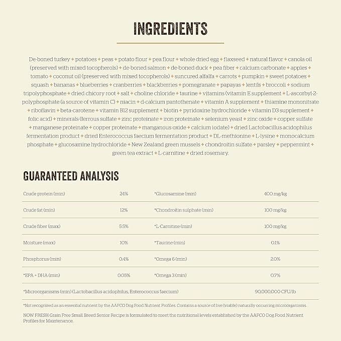 Now Fresh Grain Free Small Breed Dog Food, 12 lb - Dry Dog Food Senior Recipe - Healthy Diet with Probiotics & Real Meat & Fish for Protein