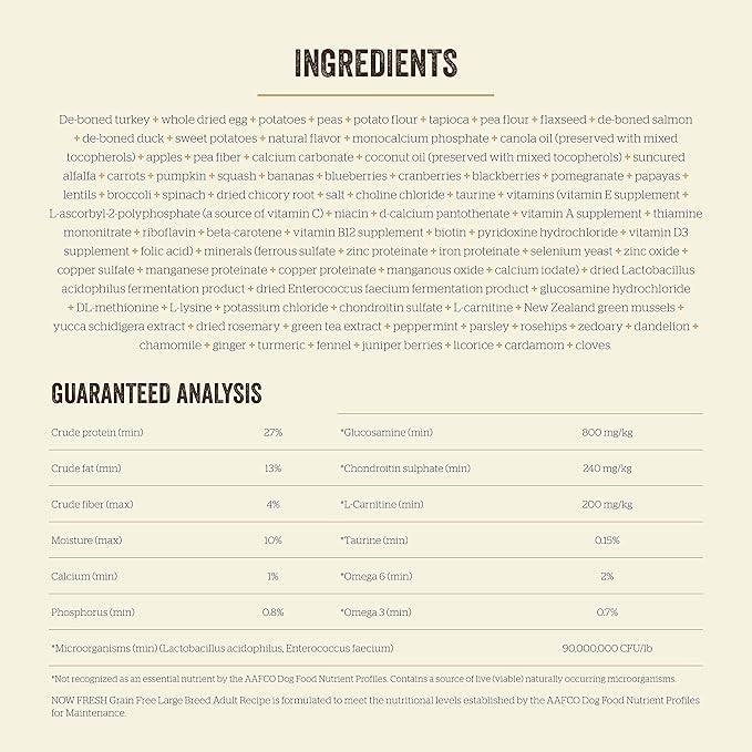 Now Fresh Grain Free Dog Food, 12 lb - Large Breed Adult Dog Food Recipe - Healthy Diet with Probiotics & Real Meat and Fish for Protein