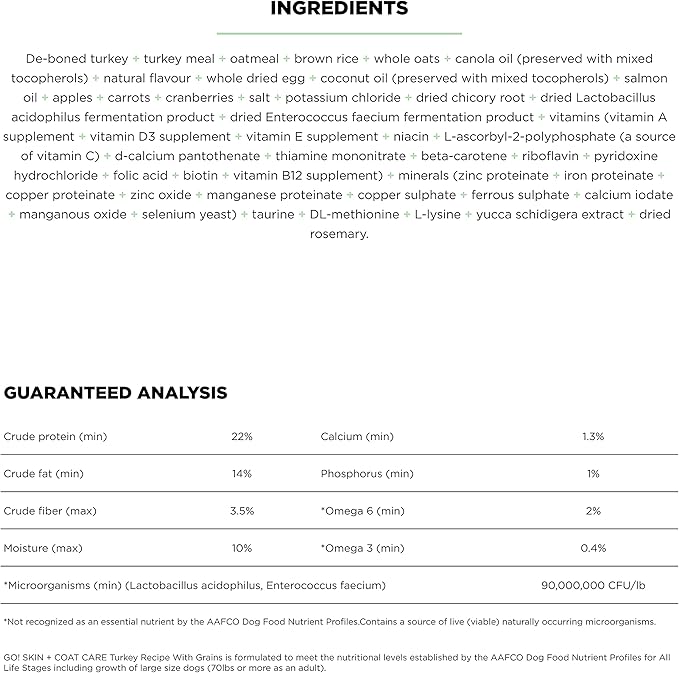 GO! SOLUTIONS Skin + Coat Care - Dry Dog Food, 3.5 lb - Turkey Recipe with Grains for All Life Stages - Complete + Balanced Nutrition for Dogs