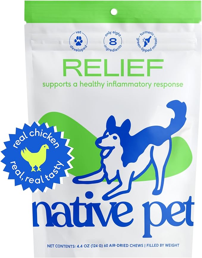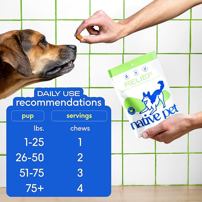 Native Pet Relief - Anti Inflammatory for Dogs | Turmeric + Polyphenols + Green Lipped Mussels for Dogs | Dog Aspirin Alternative | Best Dog Arthritis Supplement & Dog Joint Pain Relief | 60 Chews
