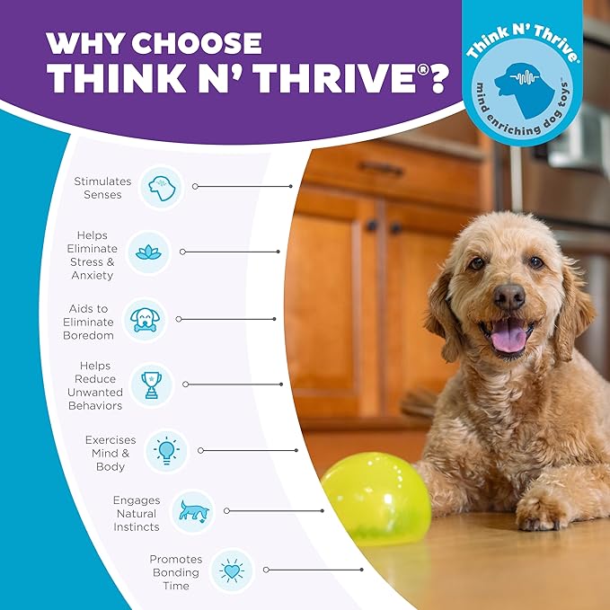 • Think N' Thrive dog enrichment toys provide mental stimulation for dogs, help relieve dog anxiety, and provide both mental and physical exercise; just 15 minutes of mental stimulation is equal to 30 minutes of physical activity