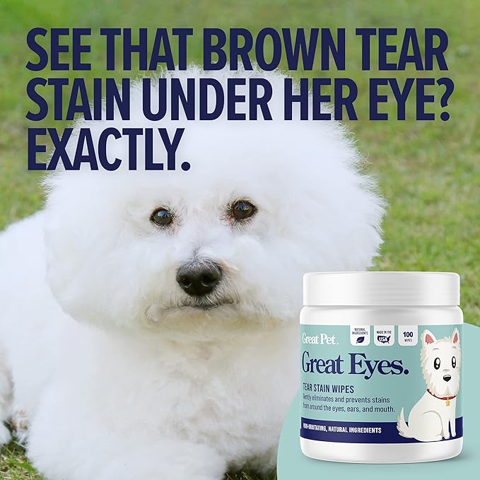 Great Eyes - Safe & Gentle Tear Stain Remover for Dogs - Natural Eye Wipes for Dogs - Made in The USA & Easy to Use Pre-Soaked Wipes - 100 Wipes