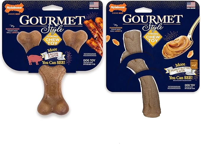 Nylabone Gourmet Style Strong Dog Chew Toy Bundle Bacon & Peanut Butter Small/Regular (2 Count)