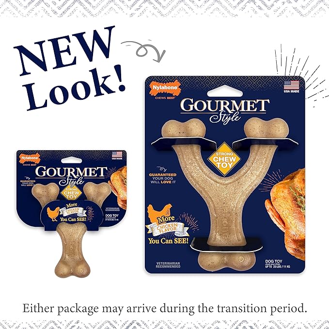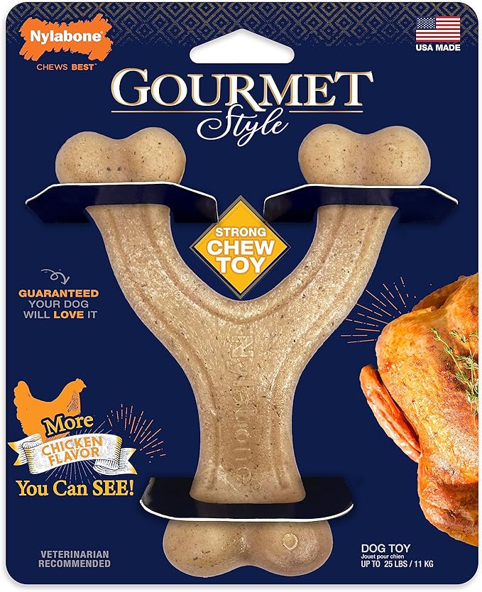 Nylabone Gourmet Style Strong Chew Wishbone Dog Chew Toy, Chicken Flavor, Small/Regular (1 Count)