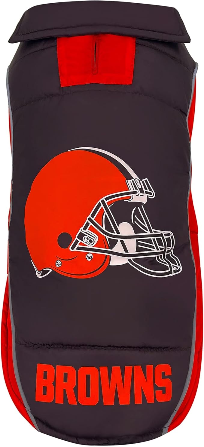 NFL Cleveland Browns Puffer Vest for Dogs & Cats, Size Large. Warm, Cozy, and Waterproof Dog Coat, for Small and Large Dogs/Cats. Best NFL Licensed PET Warming Sports Jacket