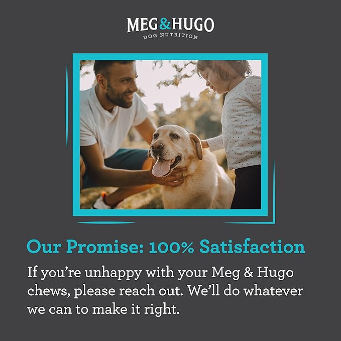 • ✔ TRUSTED BRAND, MADE IN THE USA – Meg & Hugo was born from our love for Meg a playful Spaniel and Hugo the mischievous Bulldog. Our dogs are a huge part of our families lives. We love them, perhaps too much! From this love Meg & Hugo nutritional support was born and only the best will do. All products are made in the USA from globally sourced ingredients, no ingredients derived from grain, corn, soy. No artificial flavoring or preservatives, manufactured to GMP and recommended by Vets.