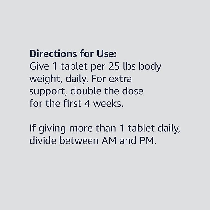 • Directions for use: Give 1 tablet per 25 lbs body weight daily. For extra support, double the dose for the first 4 weeks