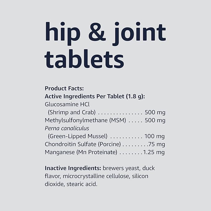 • Amazon Basics Hip and Joint Chewable Tablets are veterinarian reviewed nutritional supplements that help maintain healthy hip and joint function for all dogs