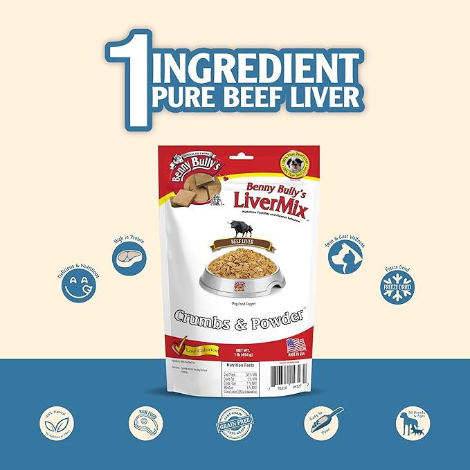 LiverMix Crumbs & Powder - Freeze Dried Beef Liver Dog Food Topper, 454g