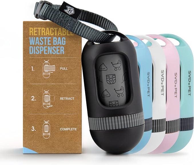 SVD.PET Dog Poop Bag Dispenser, Retractable Waste Bag Fits Any Leash, Compostable Waste/Poop Bag Holder, Dog Walking Accessory (Black)