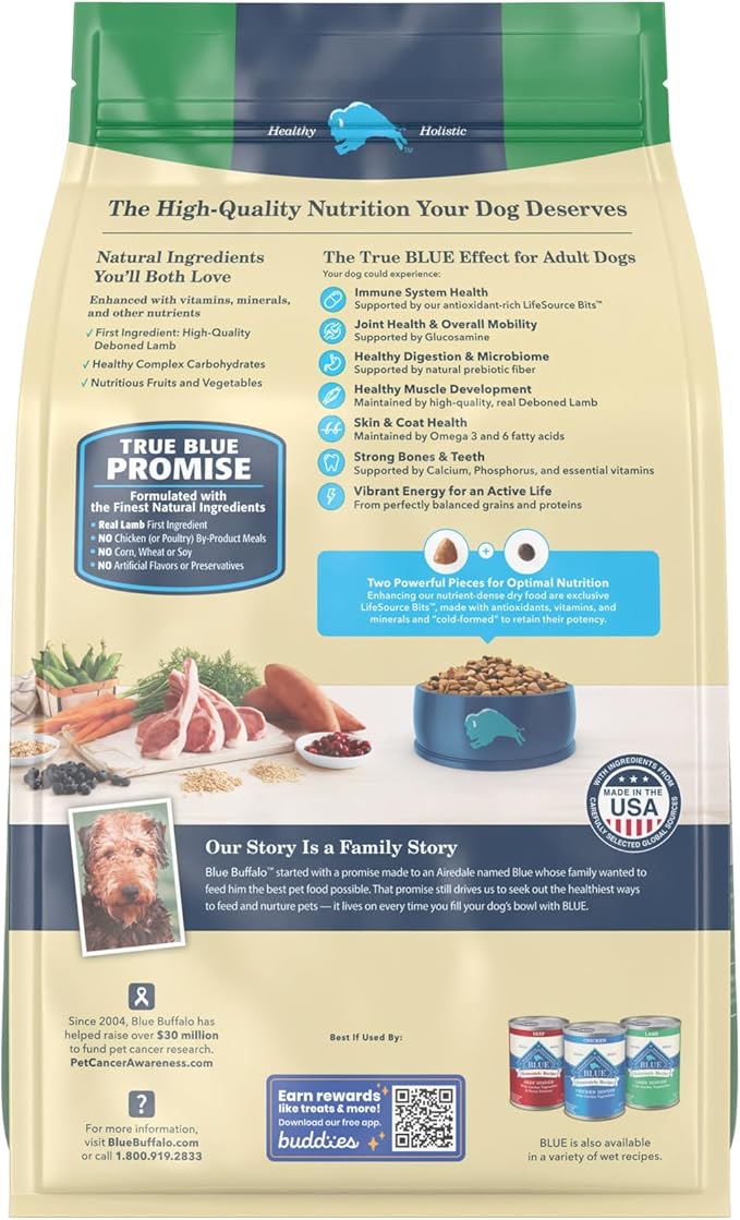 • REAL MEAT FIRST: Blue Buffalo foods always feature real meat as the first ingredient; High-quality protein from real lamb helps your dog build and maintain healthy muscles; Plus they contain wholesome whole grains, garden veggies and fruit