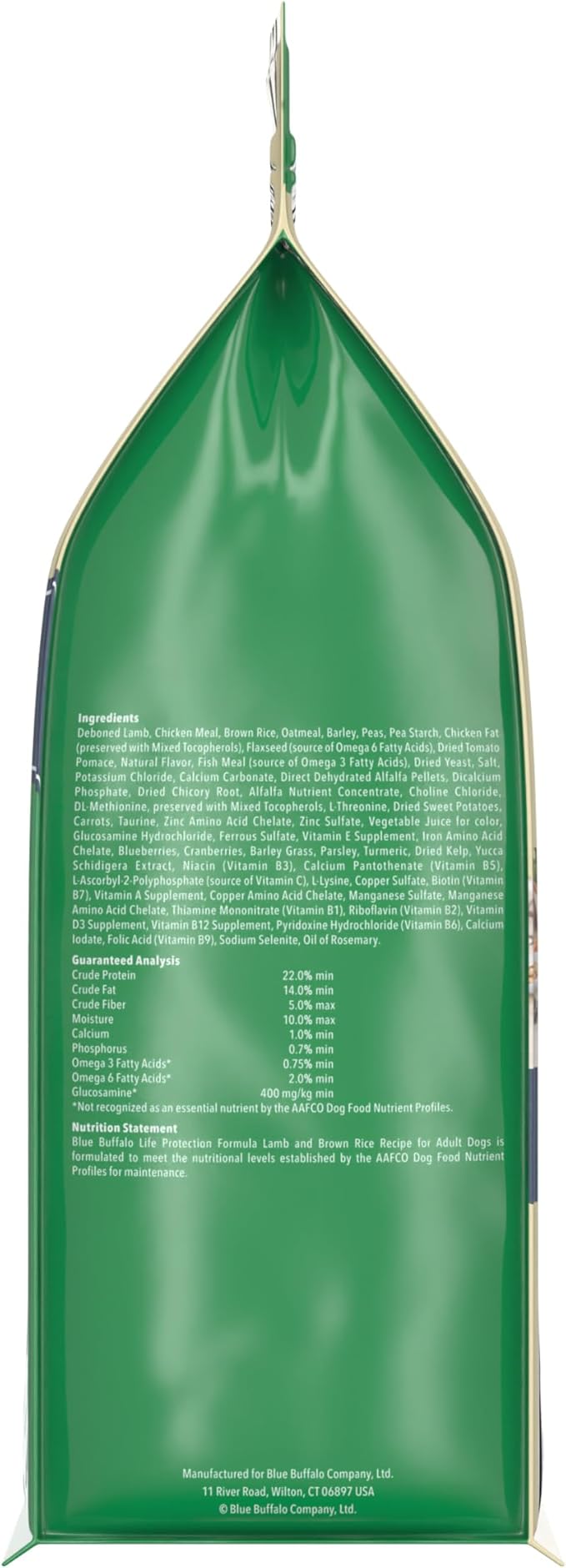 • PACKAGING MAY VARY: Contains one (1) 5 lb. Bag of BLUE Life Protection Formula Adult Dry Dog Food, Lamb and Brown Rice
