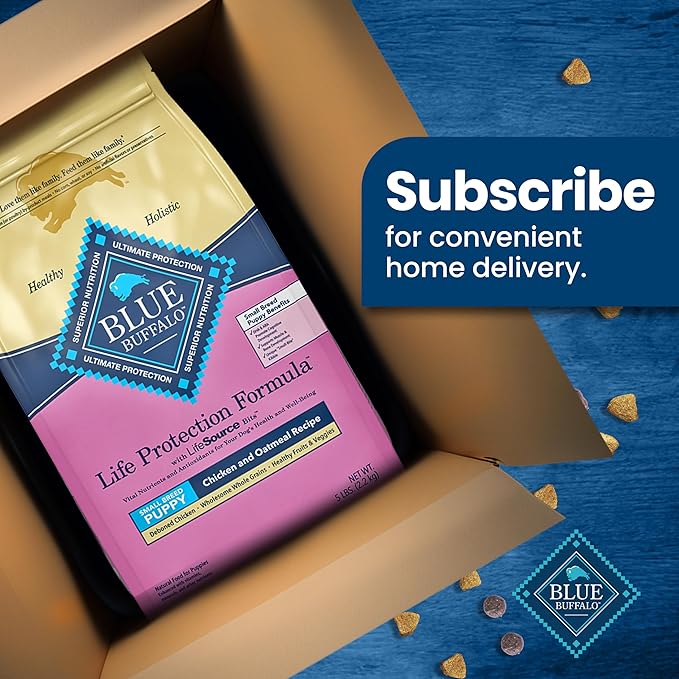 • Contains: One (1) 5-lb. trial-size bag of BLUE Life Protection Formula Small Breed Dry Puppy Food, Chicken and Oatmeal Recipe