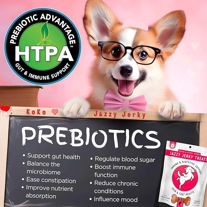 • HTPA PREBIOTIC ADVANTAGE: Prebiotics are the newest and best defense against gut dysbiosis. What's more, they wash away the bad bacteria that can exist as a byproduct of high starch foods, and they help balance the microbiome which is the gut ecosystem that you pup needs to support a healthy life. Our proprietary blend of prebiotics are made with clinically proven ingredients made by the world's most trusted ingredient manufacturers that deliver these key health benefits.