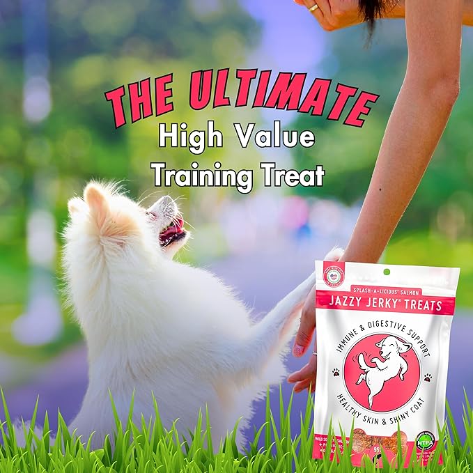 • HIGH VALUE TRAINING TREATS: A dog's nose KNOWS the good stuff, and that's why our Jazzy Jerky Treats are loved by dogs of all breeds, sizes, and life stages. You can break them into pieces during training sessions and watch your pup obey like never before. Jazzy Jerky Treats are the ideal crave-a-licious training treat that will have your pup begging for more!
