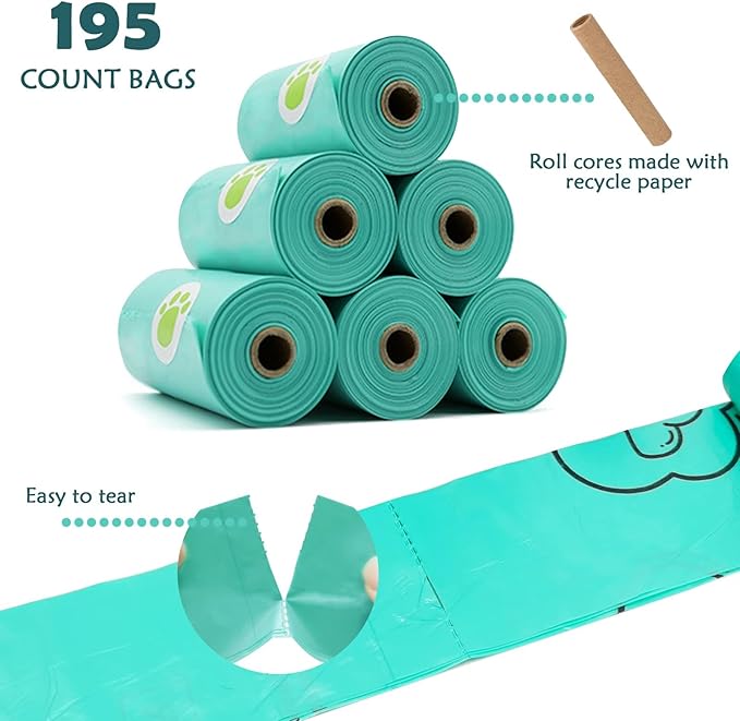 • What you can get: The package includes 1 pack of dog waste bag dispenser, 13 roll of scented dog poop waste bags, 1 durable matel cilp, 1 elastic rode and 1 hook and fastener.