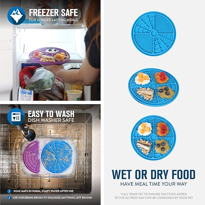 Hyper Pet IQ Treat Mat, Lick Mat for Dogs & Cats, Dental Care, Boredom Buster, Textured Surface, Suction Cups, 7.88x0.25x7.88in, Blue/Purple