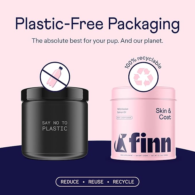 Finn Skin & Coat Salmon Oil Supplement for Dogs | Supports A Thick & Shiny Coat | Fish Oil from Wild Alaskan Salmon, Omega-3s, EPA & DHA, Biotin, & Zinc | 90 Soft Chews