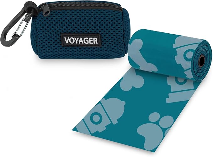 Best Pet Supplies Dog Poop Bag Holder Leash Attachment with 15 Bags, Blue, Reusable Mesh Dispenser Pouch for Travel, Walking, Park, and Outdoor Use, Soft and Durable with Clip-On