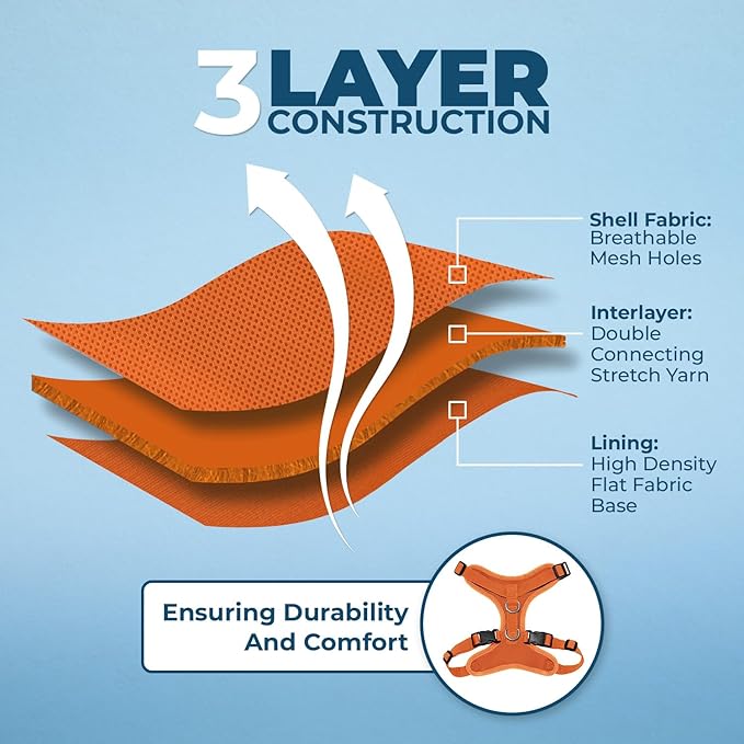 • ALL WEATHER AIR MESH: Made a soft, breathable air mesh, this fully adjustable and lightweight pet harness is perfect for walks all year round