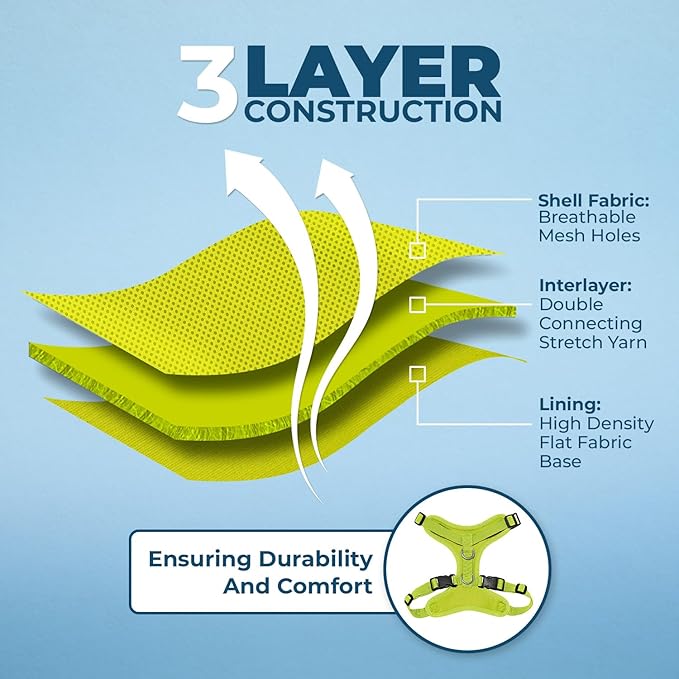 • ALL WEATHER AIR MESH: Made a soft, breathable air mesh, this fully adjustable and lightweight pet harness is perfect for walks all year round