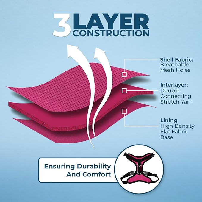 • ALL WEATHER AIR MESH: Made a soft, breathable air mesh, this fully adjustable and lightweight pet harness is perfect for walks all year round