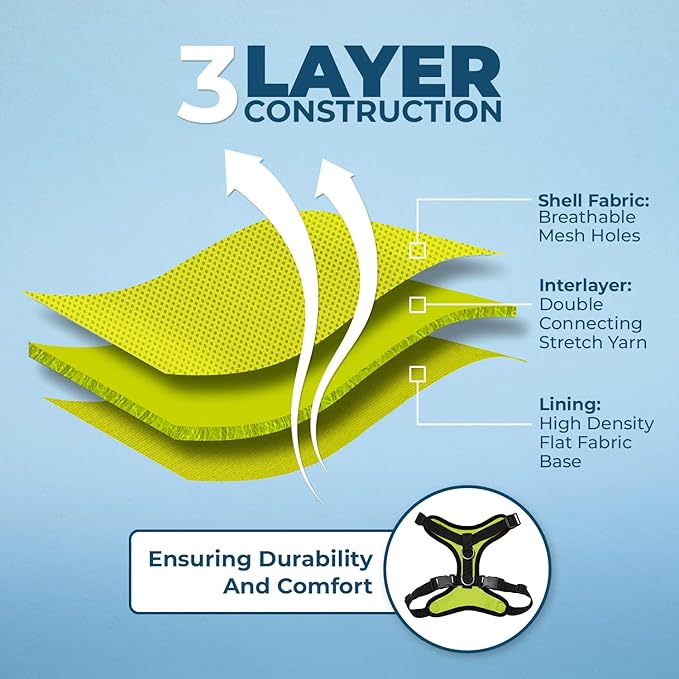 • ALL WEATHER AIR MESH: Made a soft, breathable air mesh, this fully adjustable and lightweight pet harness is perfect for walks all year round
