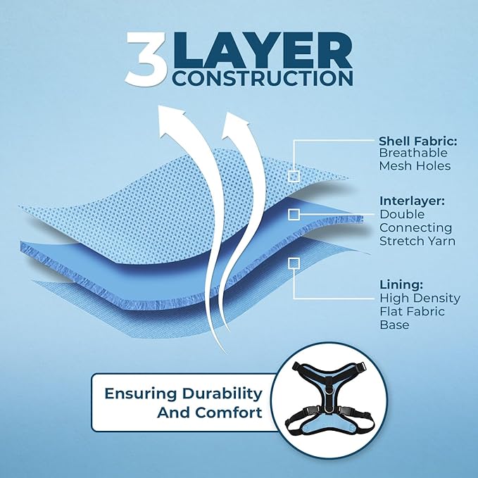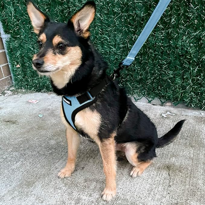 • ALL WEATHER AIR MESH: Made a soft, breathable air mesh, this fully adjustable and lightweight pet harness is perfect for walks all year round