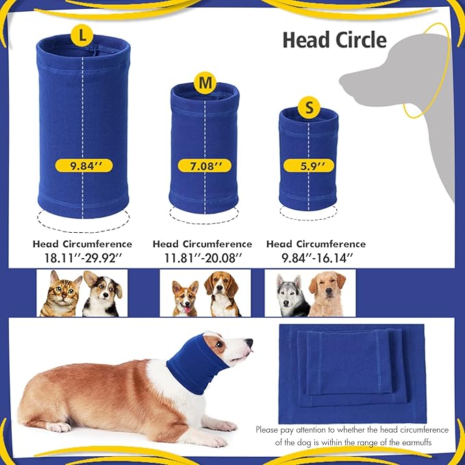 • 🐕🐕【Noise-Reducing Earmuffs】The dog ear wraps can effectively reduce the noise that stimulates pets; The warm full wrap design can calm, comfort and protect pets, making them feel safe and stable ​in loud environments such as cars, airports, noise, thunder and fireworks.