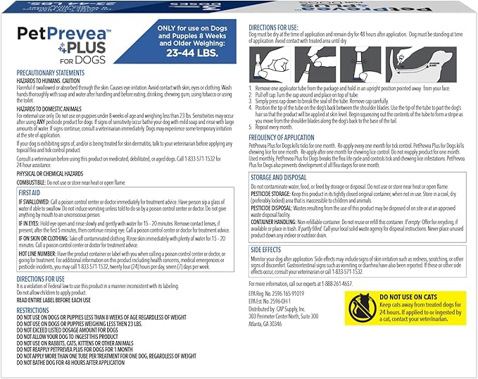 • PREVENTS & TREATS ITS TARGETS - PetPrevea Plus for Dogs is a convenient, easy-to-apply topical solution that kills fleas, ticks, flea eggs, chewing lice and flea larvae. The treatment kills all stages of ticks: Brown dog ticks, American dog ticks, Lone Star ticks and Deer ticks. This once-a-month topical application helps to treat and prevent infestations.