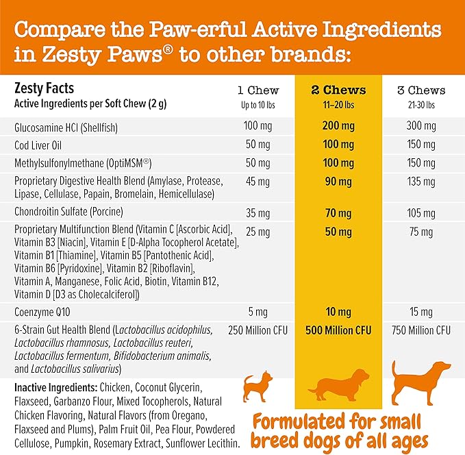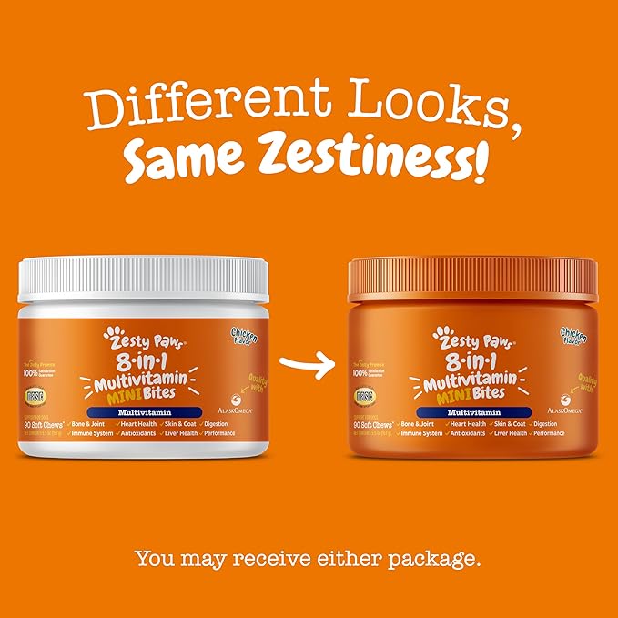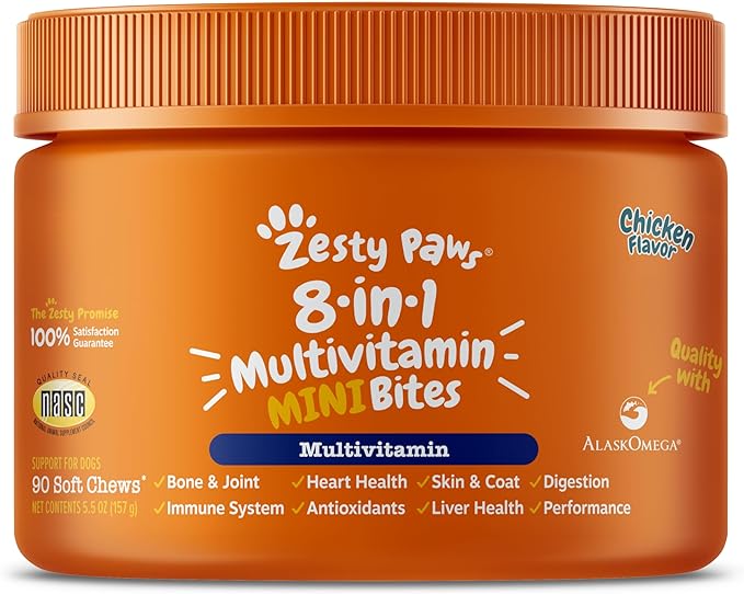 Zesty Paws Multivitamin Treats for Dogs - Glucosamine Chondroitin for Joint Support + Digestive Enzymes & Probiotics - Grain Free Dog Vitamin for Skin & Coat + Immune Health - Chicken - Mini - 90ct