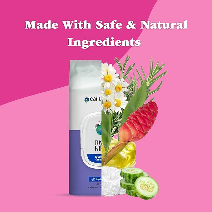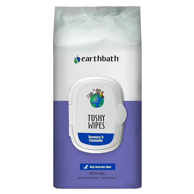 earthbath, Rosemary & Chamomile Tushy Wipes - Dog Wipes for Paws and Butt, Best Pet Wipes for Dogs & Cats, Made in USA, Cruelty-Free Dog Cleaning Wipes, Helps Neautralize Odors - 100 Count (1 Pack)