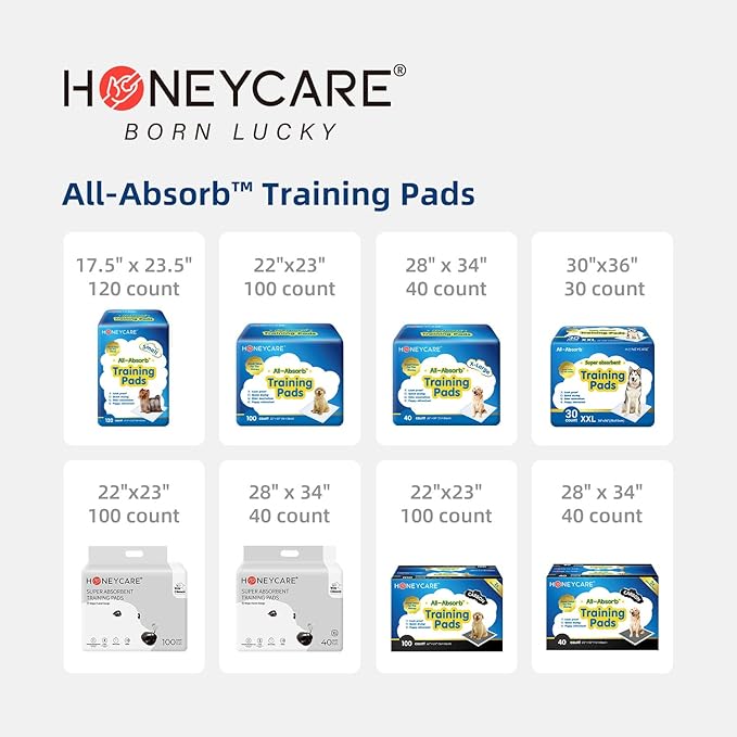Honey Care All-Absorb Puppy Training Pads Made in The USA! Ultra Absorbent and Odor Eliminating, Leak-Proof 5-Layer Potty Training Pads 22"x23" with Quick-Dry Surface
