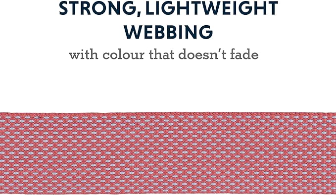 • Made with ultralight, strong webbing with color that doesn’t fade; Features a strong aluminum D-ring for a secure leash attachment point