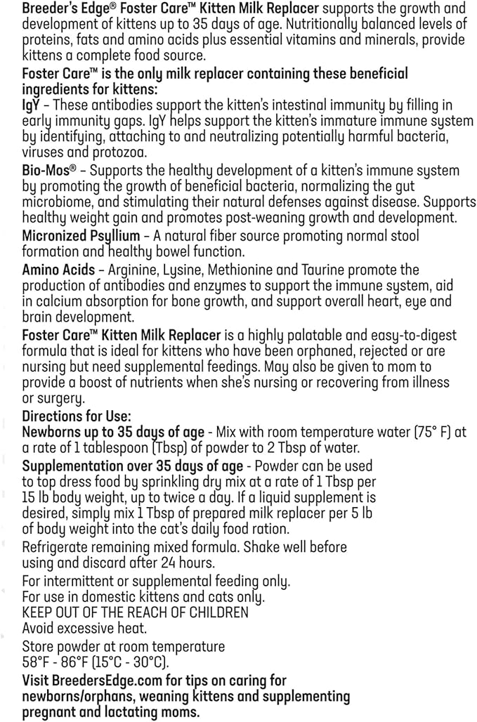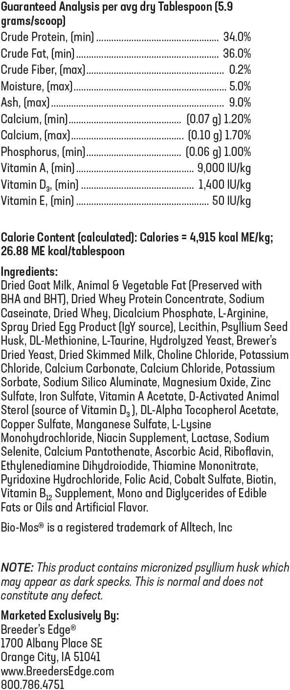 Breeder's Edge Foster Care GM - Goat Milk Based Powdered Milk Replacer - Puppies , Kittens , Cats & Dogs Formula - Easy Digestion - 5 lb