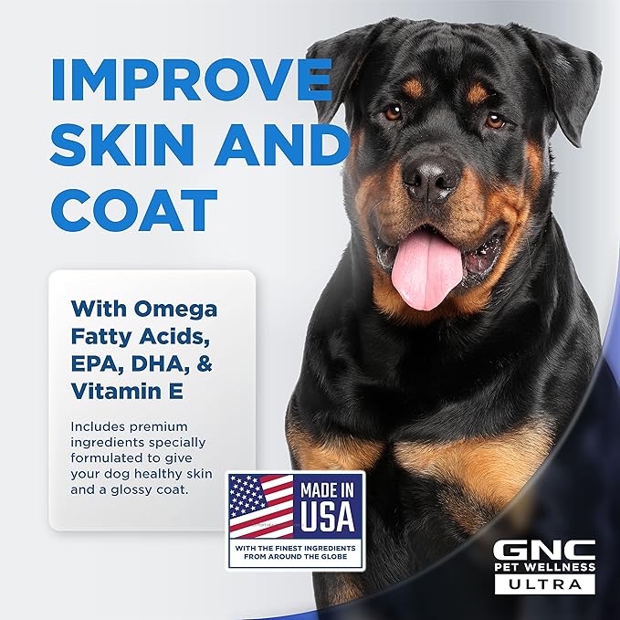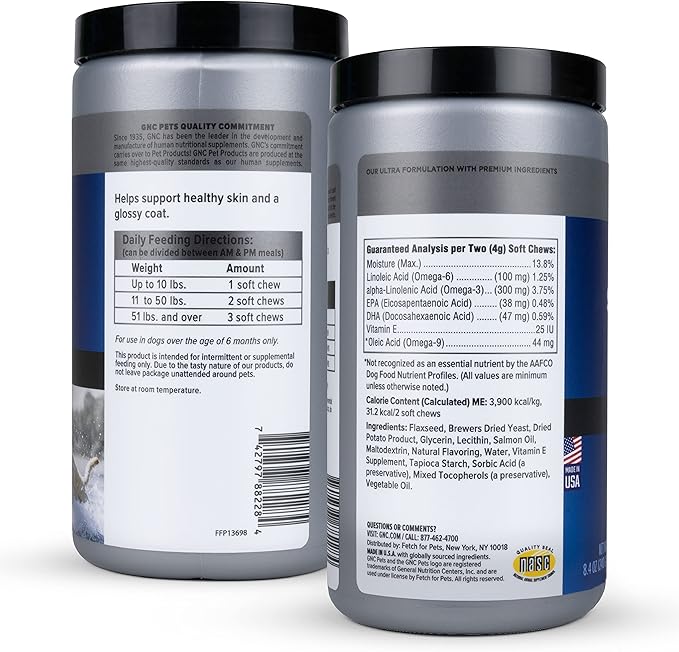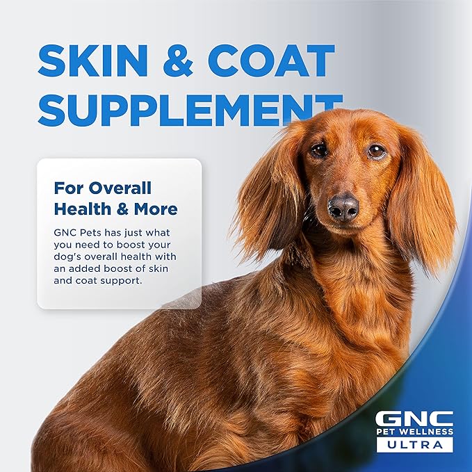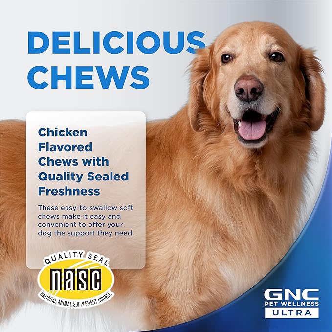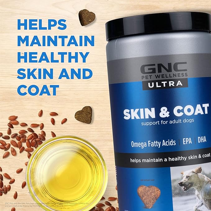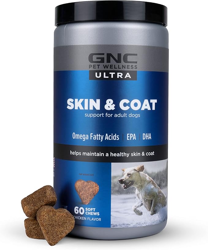 GNC Pets ULTRA Skin & Coat Soft Chews, All Dogs, Chicken Flavor. 60-ct in a 16-oz Canister | Daily Supplement for Skin & Coat for Dogs in Chewable Chicken Flavor