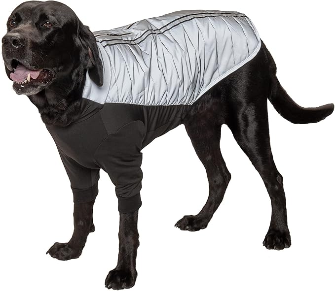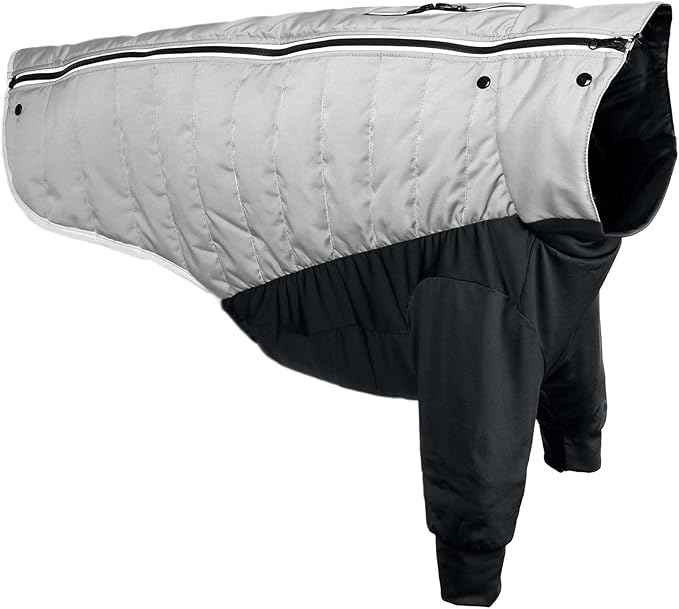 • HASSLE-FREE DESIGN: Dressing your dog into the Pro-Fit coat is easy-peasy; simply un-zip the back, have the dog step into the stretchy panel sleeves, and then pull up the coat against their body