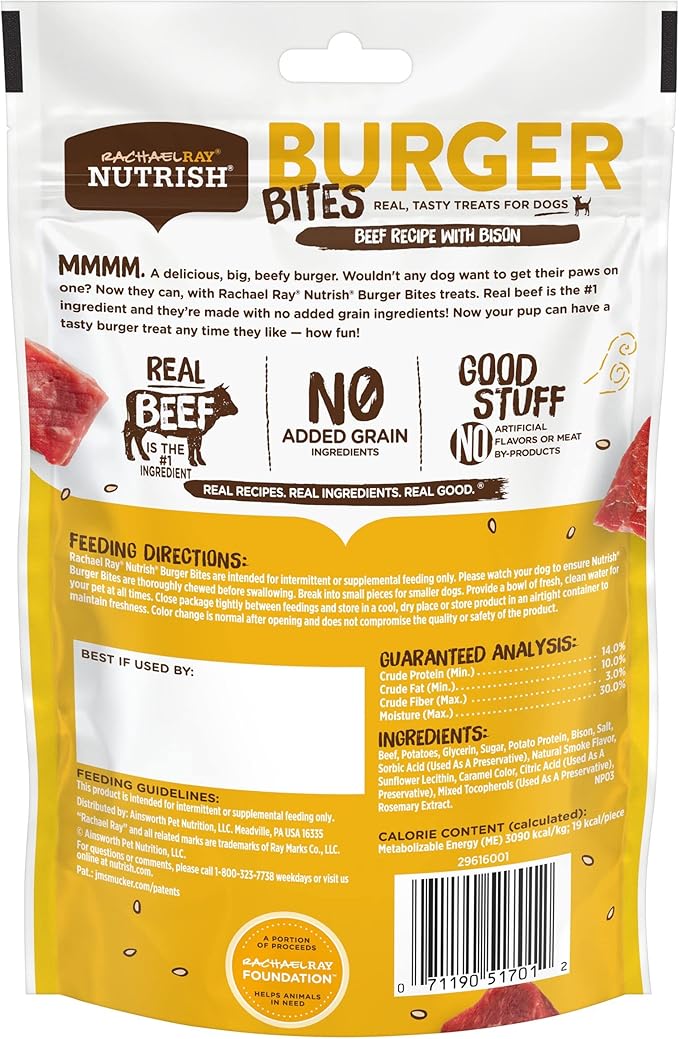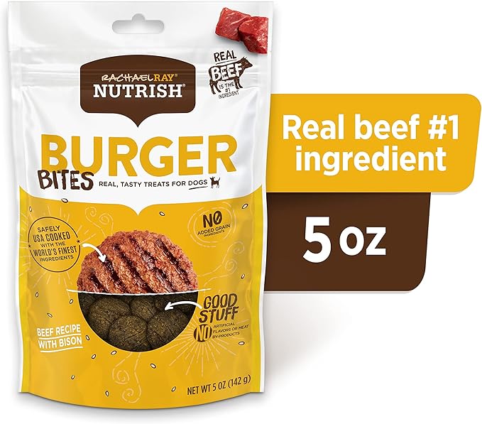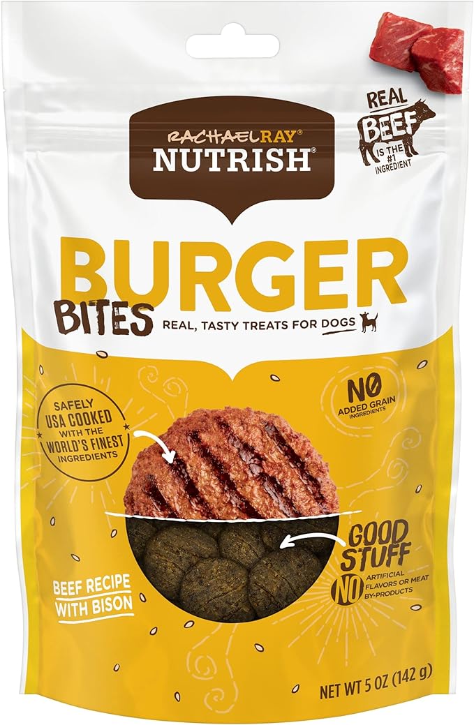 Rachael Ray Nutrish Burger Bites Real Meat Dog Treats, Beef Burger with Bison Recipe, 5 Ounce (Pack of 5), Grain Free