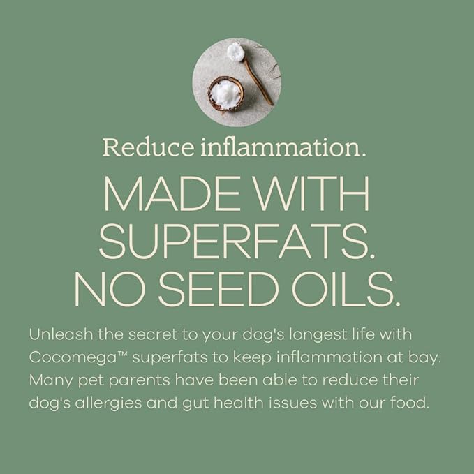 • SUPERFATS, NO SEED OILS: Unleash your dog's longest life with Cocomega superfats backed by research to keep inflammation at bay.