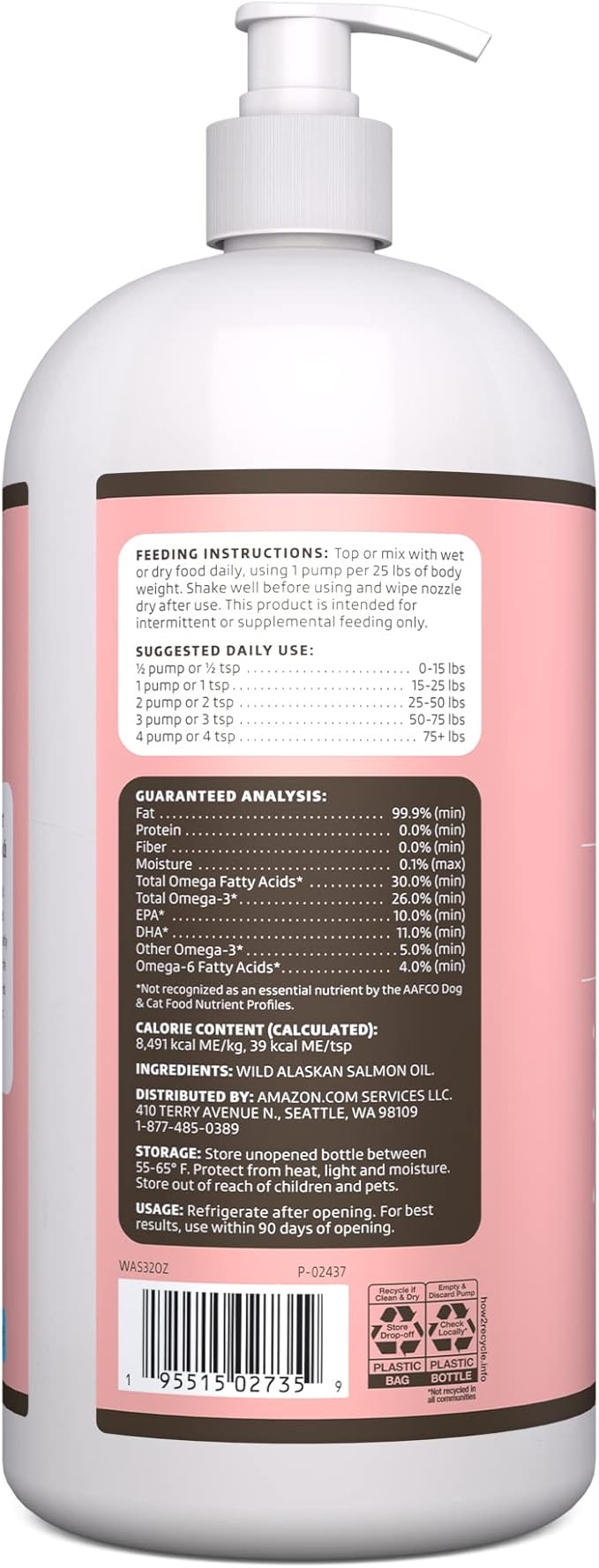Amazon Brand - Wonder Bound Wild Alaskan Salmon Oil for Dog, Cat, 32 fl oz