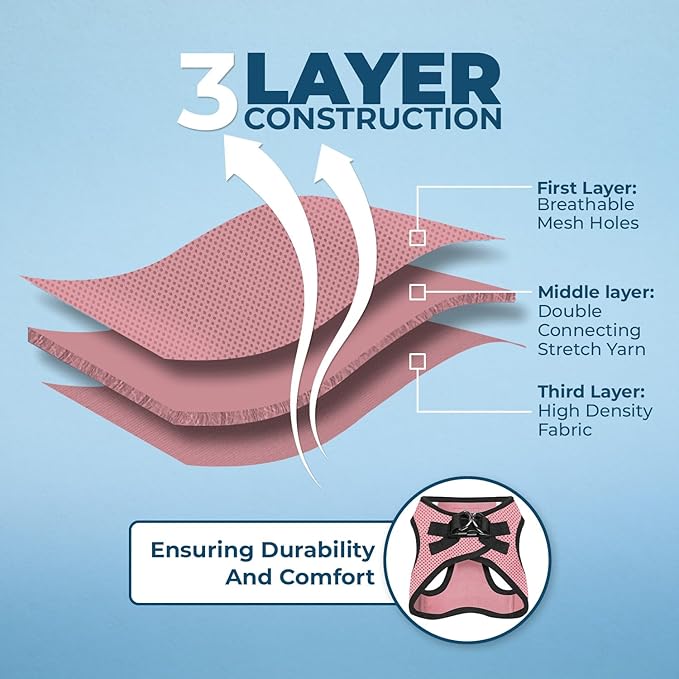 • ALL WEATHER MESH: Made with a soft, breathable air mesh, this lightweight pet harness is perfect for walks all year round.