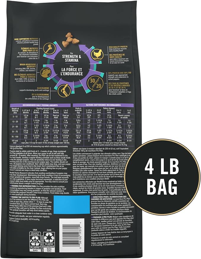 Purina Pro Plan Puppy Sport Development 30/20 Chicken and Rice High Protein Puppy Food - 4 lb. Bag
