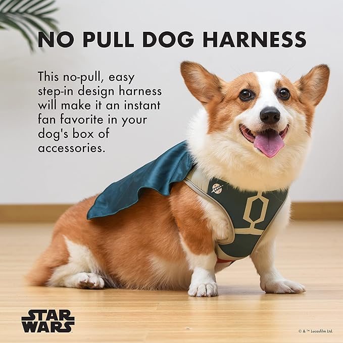 STAR WARS Pets Boba Fett Dog Harness with Cape, Medium (M) | Medium Dog Boba Fett Harness for Dogs | Pet Harness, Harness for Medium Dogs, Green, (FF19560)