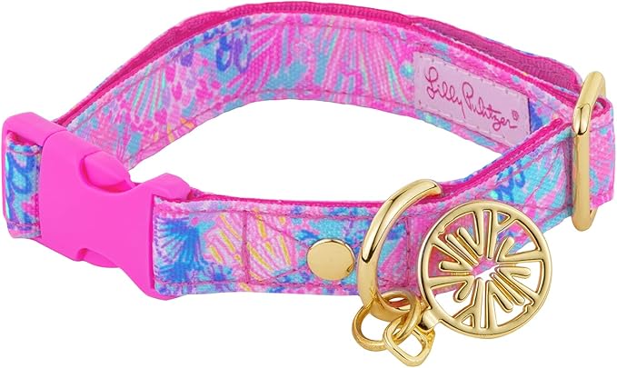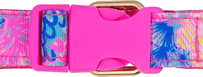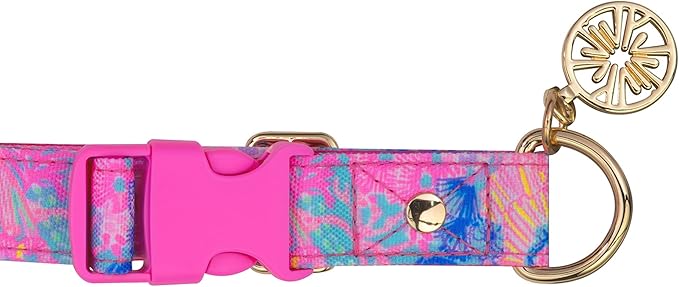 • Featured in the colorful Lilly Pulitzer print, Splendor in the Sand, with gold metal hardware accents for added flair. Now your pet can have a Lilly wardrobe of its own!