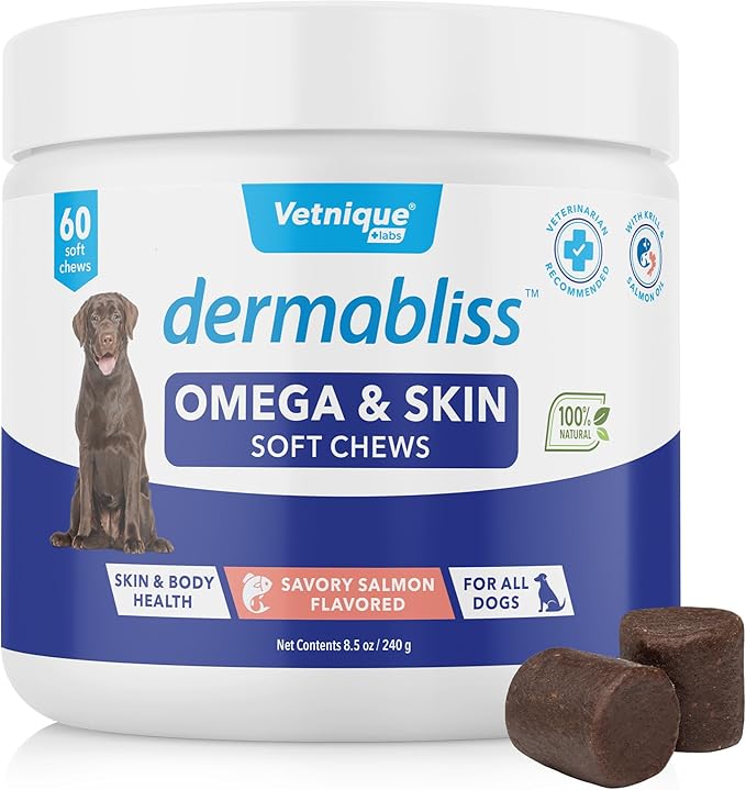 • VETERINARIAN FORMULATED & RECOMMENDED- Vetnique Labs products are created by veterinarians with your pet’s health in mind. Our Dermabliss Omega 3 Fish Oil for dogs supplement chews help maintain the overall health & wellness of your dog. Created by vets for happy pets!