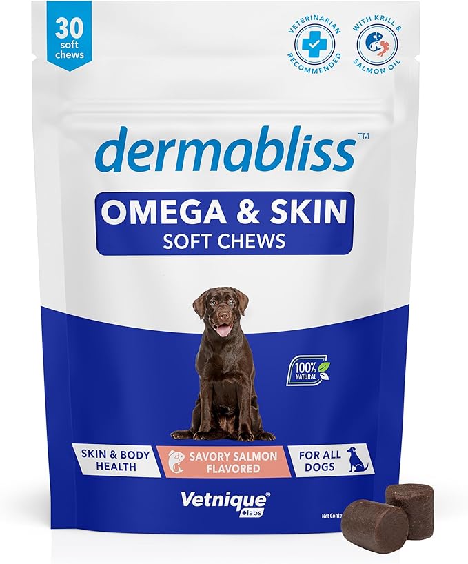 • VETERINARIAN FORMULATED & RECOMMENDED- Vetnique Labs products are created by veterinarians with your pet’s health in mind. Our Dermabliss Omega 3 Fish Oil for dogs supplement chews help maintain the overall health & wellness of your dog. Created by vets for happy pets!